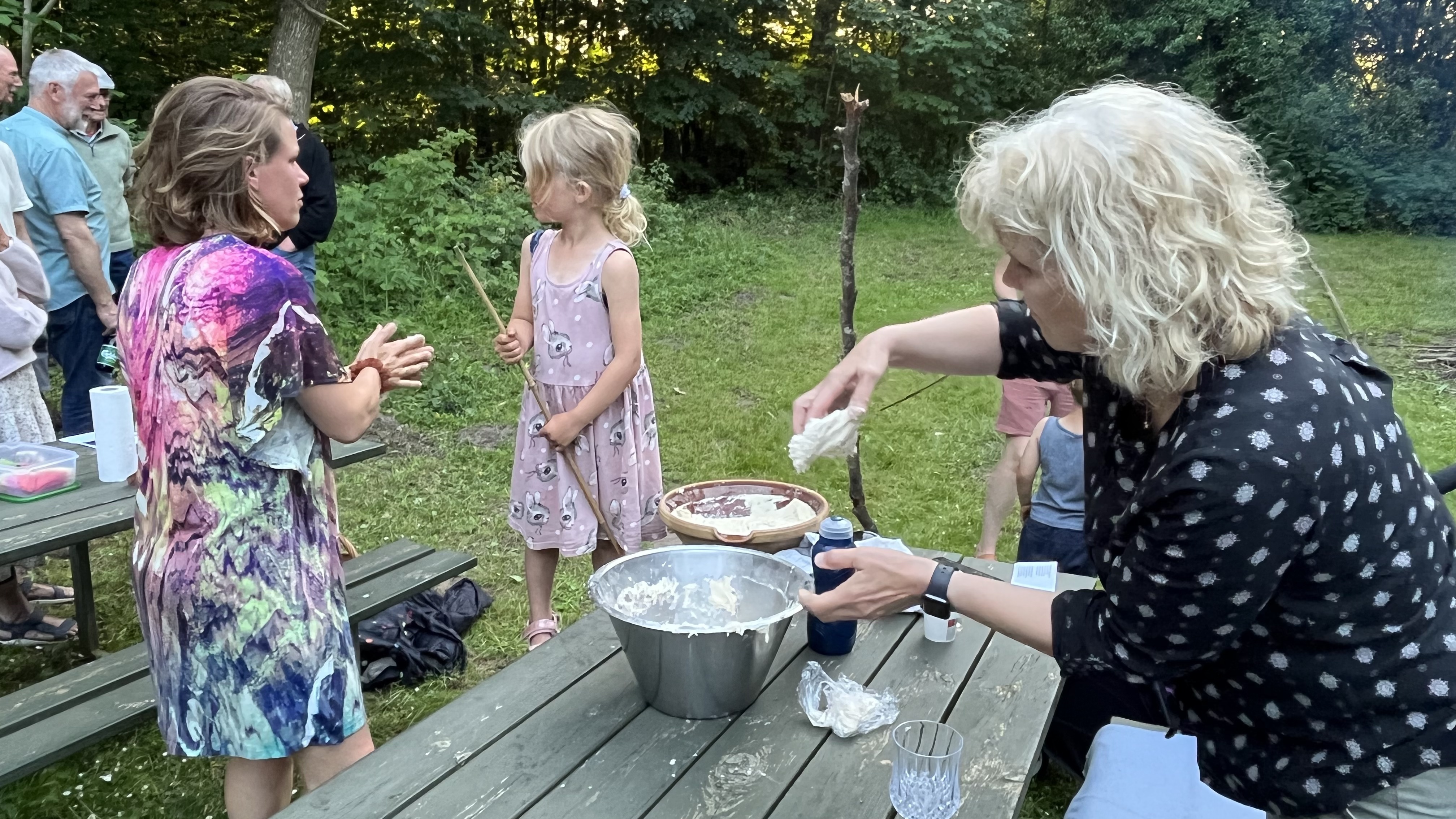 Sensommerfest med bærplukning. Altid et godt selskab og årets udgave af Vibekes snaps sættes til at trække smag fra høsten.