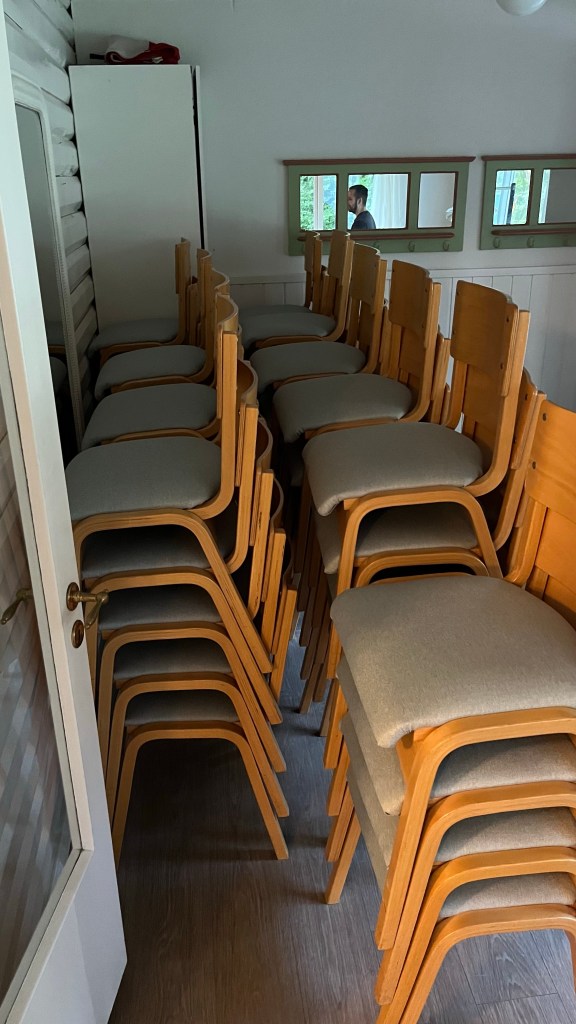 Da alle stole er ombetrukket så er der ikke ombetrækningsdag nummer 2 i morgen, nu da opgaven er fuldført og fejret.