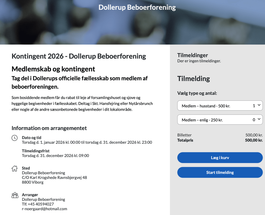 Tilmelding bedes gennemført senest 1. februar og din tilmelding gælder for hele 2026.