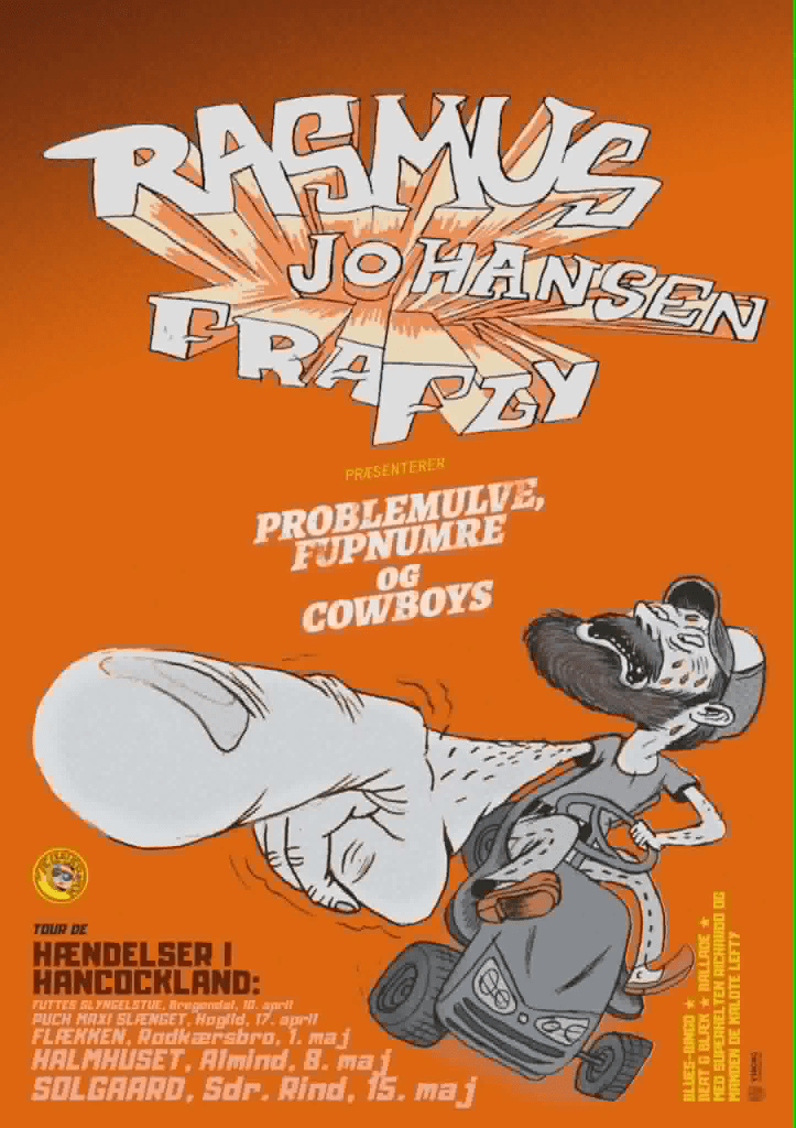 Publikum kan glæde sig til sange om problemulve, fupnumre og cowboys, beatbox-blues og røverhistorier fra randzonen. Samtidig indsamler Rasmus Johansen historier og stemninger fra lokalsamfundene til en kommende EP med arbejdstitlen “HÆNDELSER I HANCOCKLAND”.